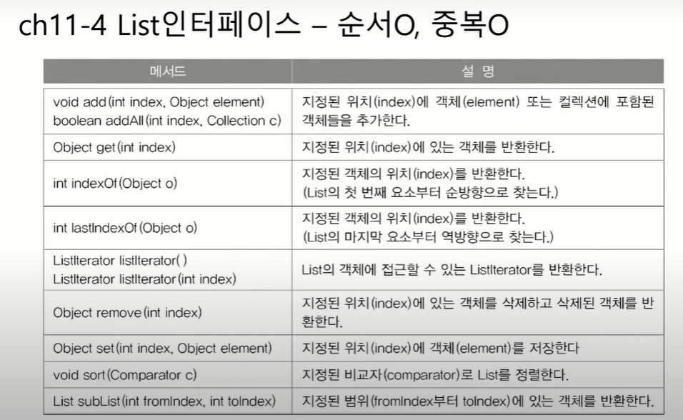 //List컬렉션 ? 특징 - 인덱스관리, 중복허용