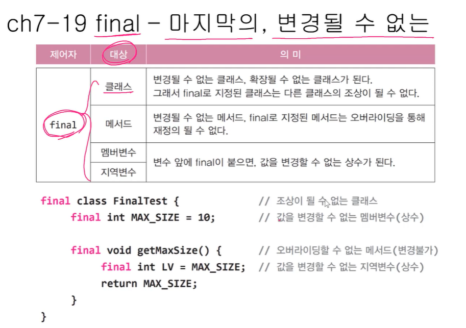 객체지향 static, final, abstract 제어자 미완성 설계도 = 제품 생산풀가 (객체x) 상속을 통해 객체를 만들어야한다 주소 : https://www.youtube.com/watch?v=Hmu7YH8AXmI&list=PLW2UjW795-f6xWA2_MUhEVgPauhGl3xIp&index=77 JAVA 2022.09.26